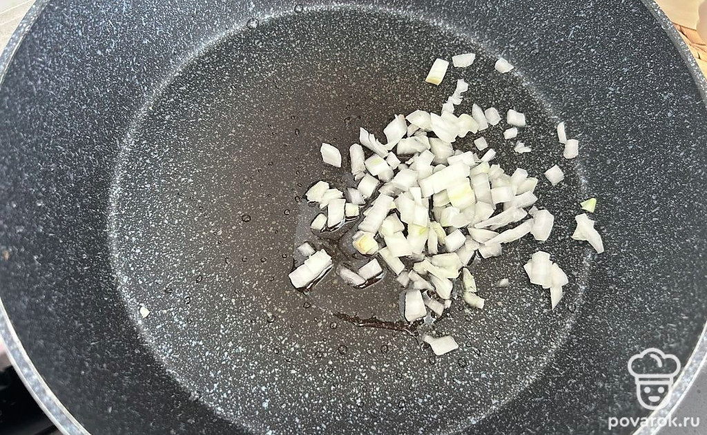 Лук нарежьте мелким кубиком и обжарьте в течение 5 минут.