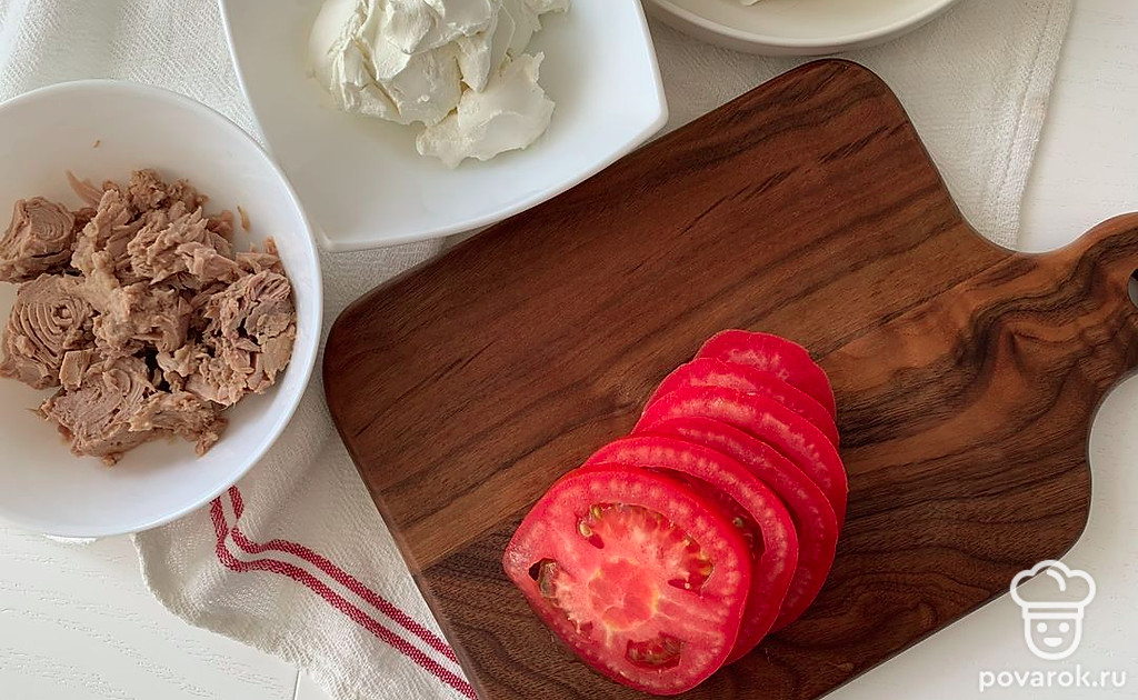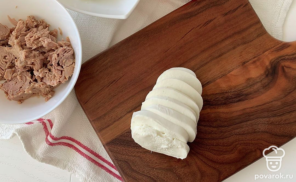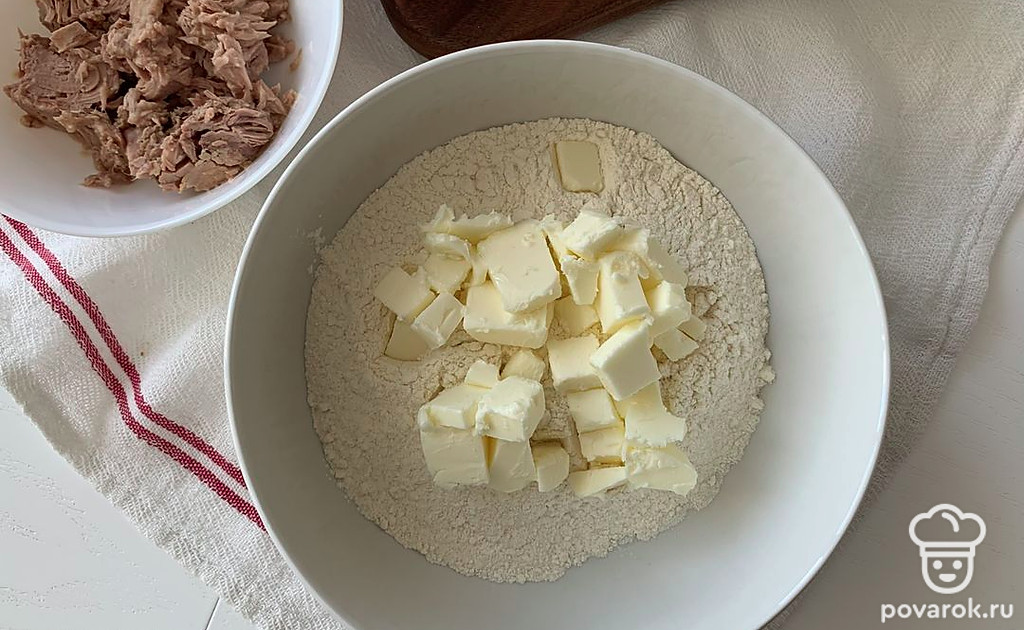 Подготовьте все ингредиенты. Из банки с тунцом слейте лишнюю жидкость. Холодное масло нарежьте кубиком.