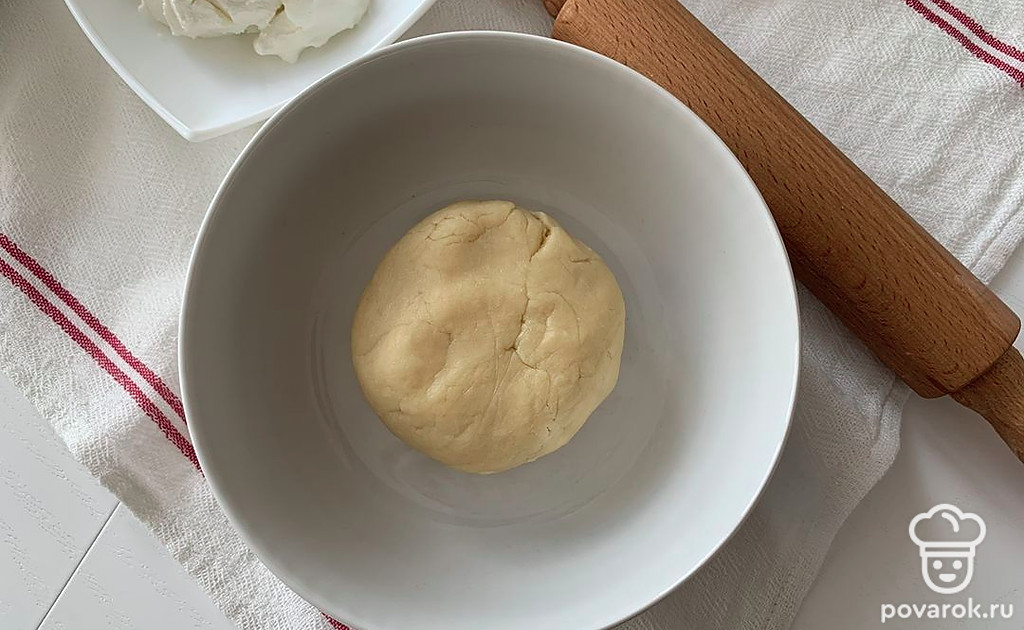 Замесите тесто, сформируйте из него шар. Заверните в пищевую пленку и уберите в холодильник на 20 минут.