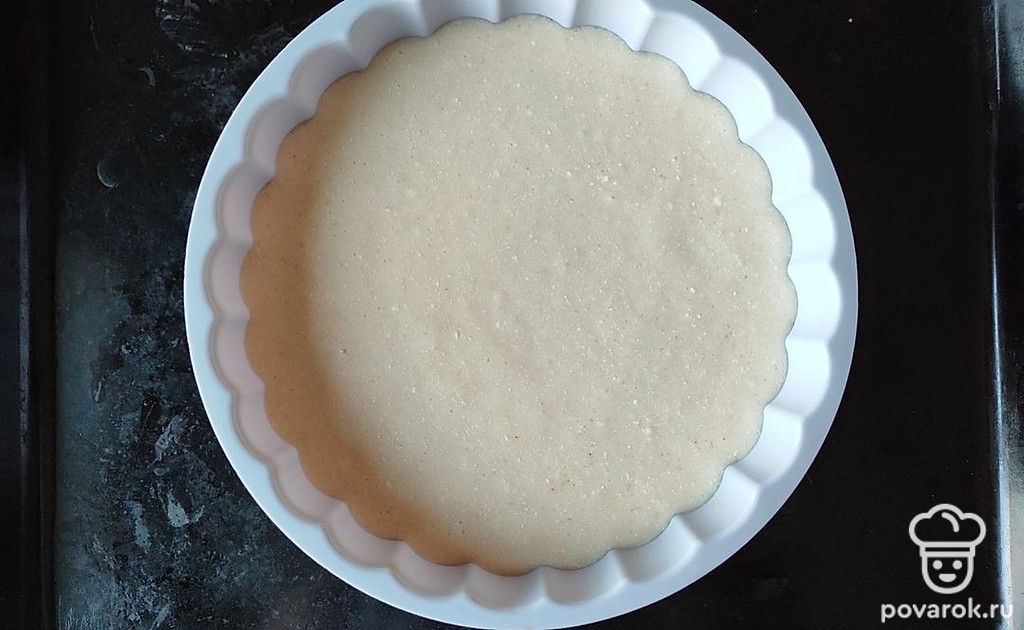 Влейте тесто в силиконовую форму и поставьте в разогретую духовку на 45-60 минут при 180 градусах. Можно использовать форму из другого материала. Готовность лучше проверять зубочисткой, но не раньше, чем через 45 минут после начала выпекания.