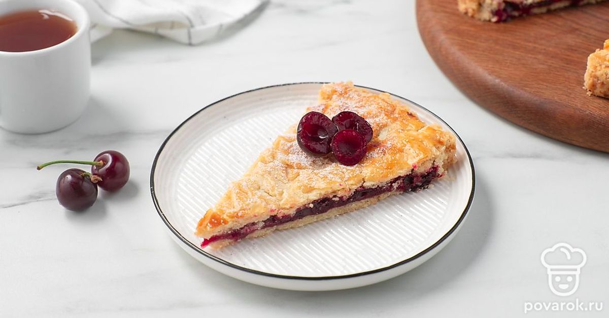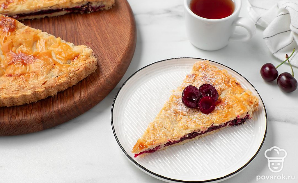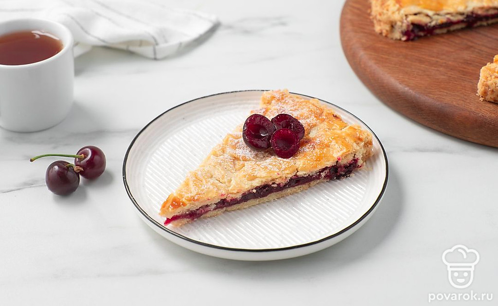 Вишня считается, пожалуй, одной из самых удачных начинок для пирогов. Она сладкая, но с кислинкой, а еще в ней много сока, что делает выпечку особенно вкусной. Чтобы загустить вишневую массу, проварите ягоды с небольшим количеством крахмала. Песочное тесто для таких сладких пирогов подойдет как нельзя лучше.