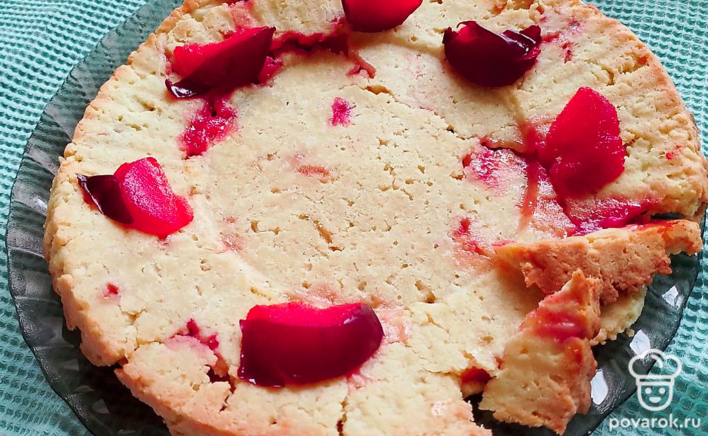 Пирог можно перевернуть и украсить ягодами или фруктами.