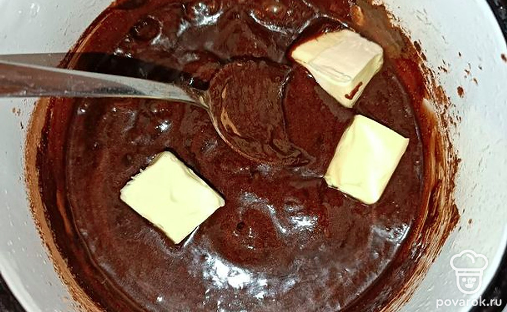 Когда сахар растворится, добавьте 50 граммов сливочного масла. Дайте остыть.