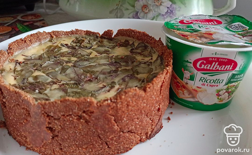 Гречневой киш «Лорен» с козьей рикоттой, молоком и базиликом