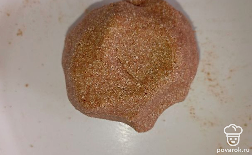 Из стакана в 170 грамм размолотой и просеянной гречневой крупы, 50 грамм сливочного масла, половины яйца, 2 столовых ложек нейтрализованной 1/4 чайной ложки соды сметаны замесите песочное тесто.