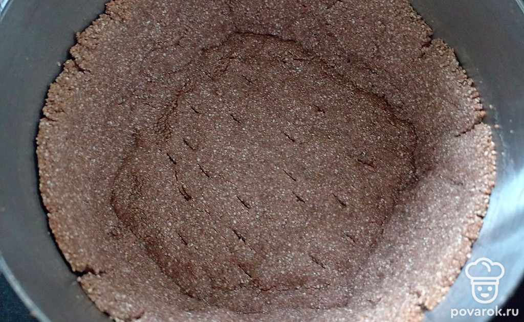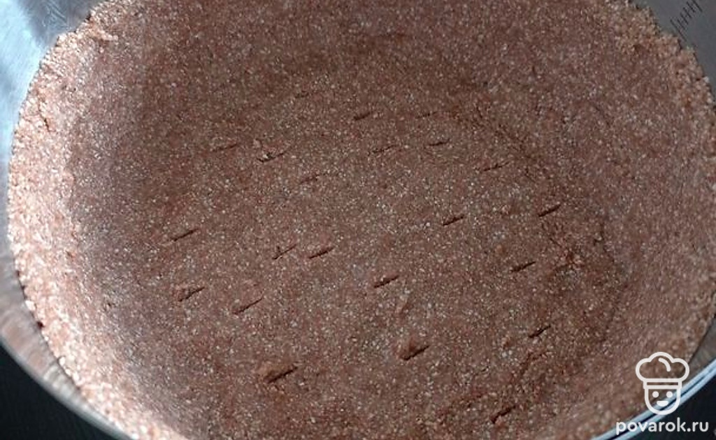 Раскатайте тесто до толщины около 5 миллиметров. Вырежьте кольцом для выпекания донышко. Из обрезков сформируйте бортики около 6 сантиметров.