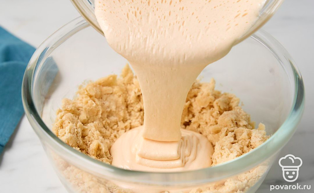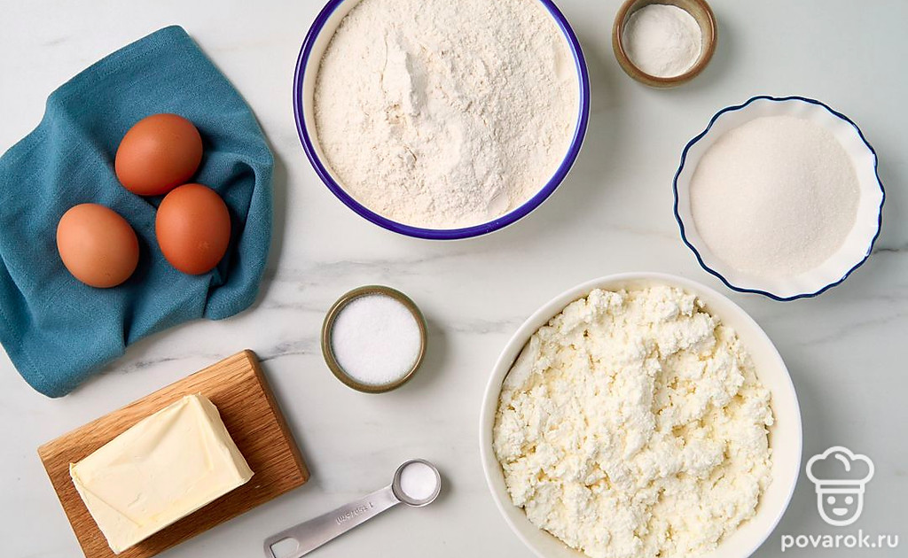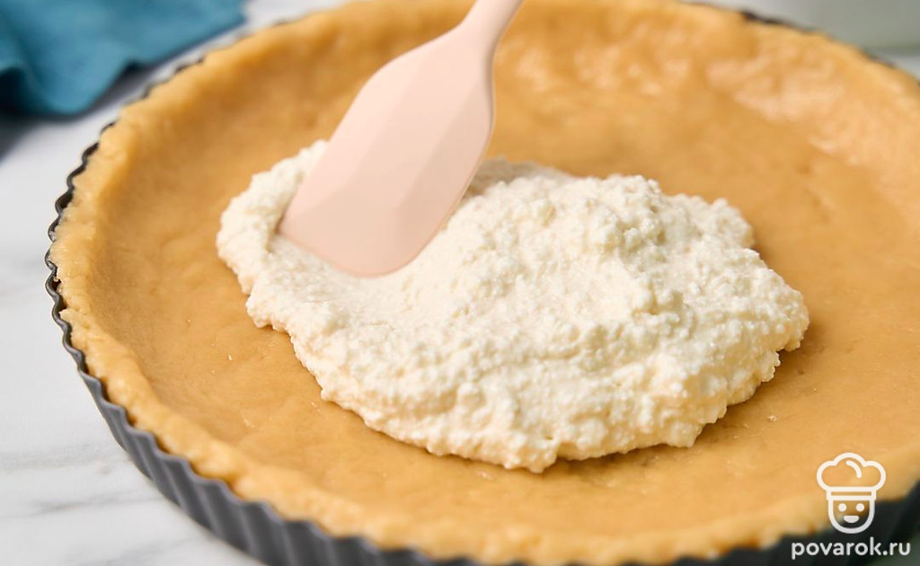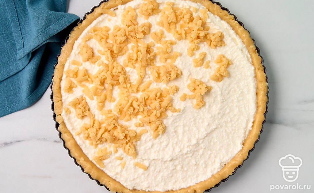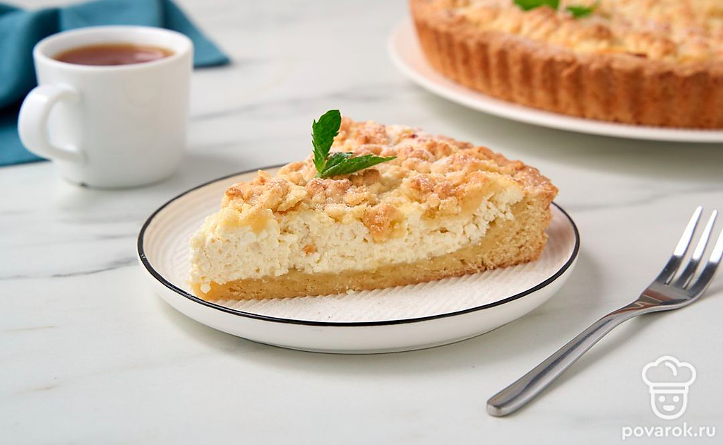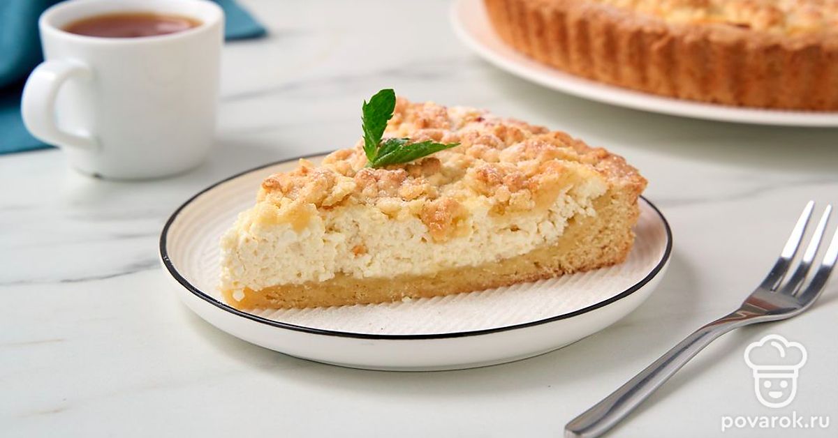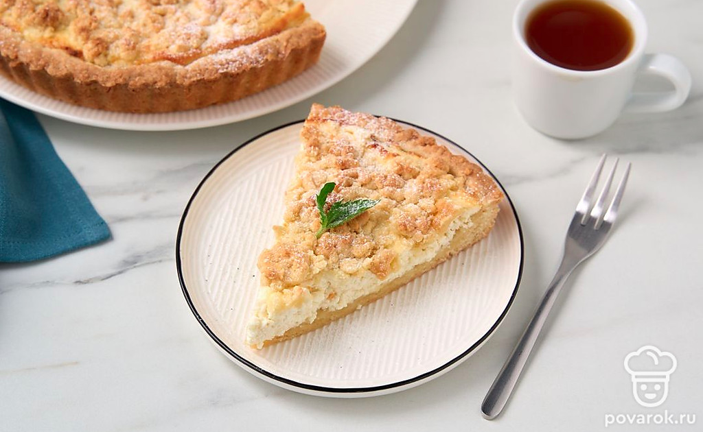 Песочное рассыпчатое тесто прекрасно сочетается с творожной начинкой. А свежеиспеченный домашний пирог располагает к уютным семейным чаепитиям. Особенность этого рецепта в том, что небольшую часть теста нужно натереть и посыпать сверху на пирог перед отправкой в духовку. Чтобы было легче это сделать, сначала положите тесто на 10-15 минут в морозилку. По желанию добавьте в начинку ягоды, фрукты, орешки или шоколадную крошку.