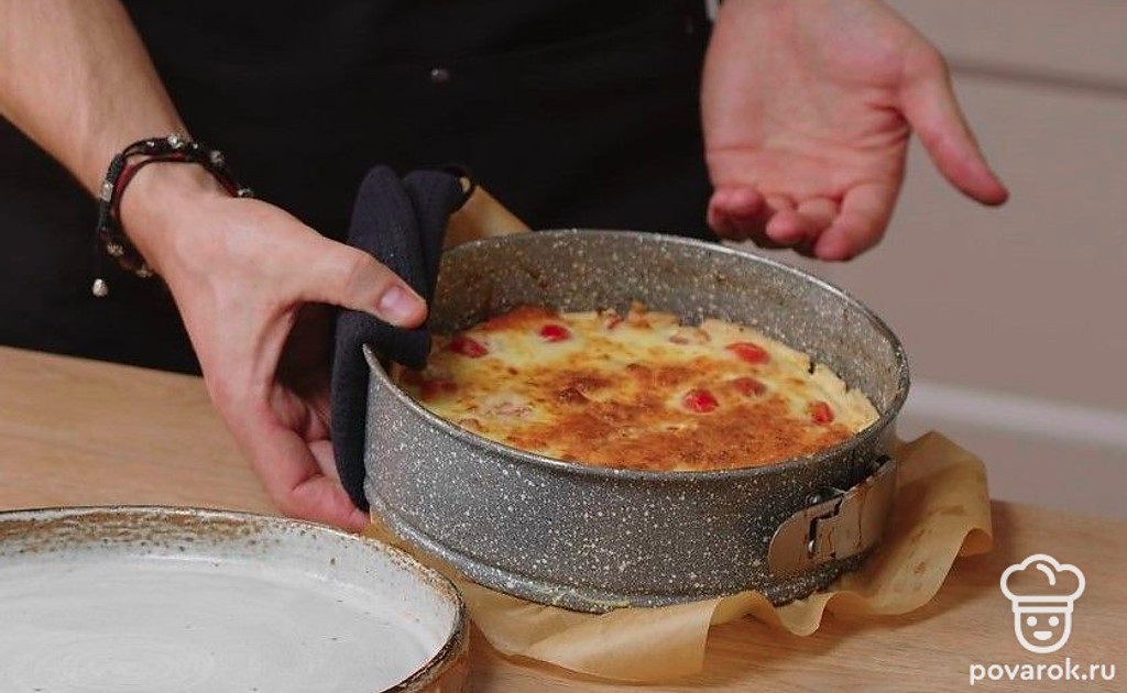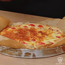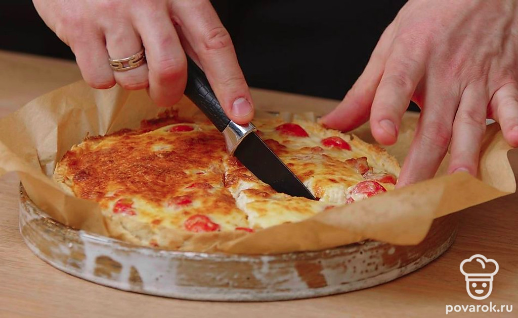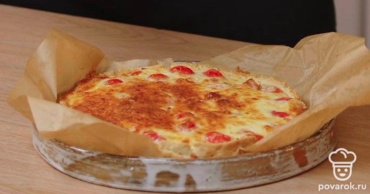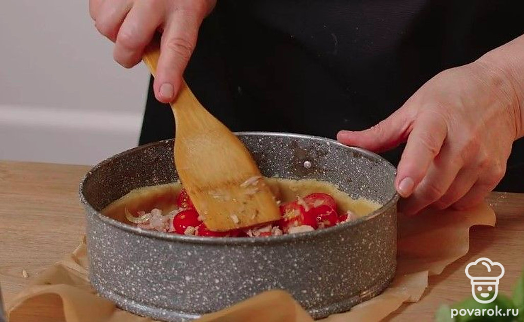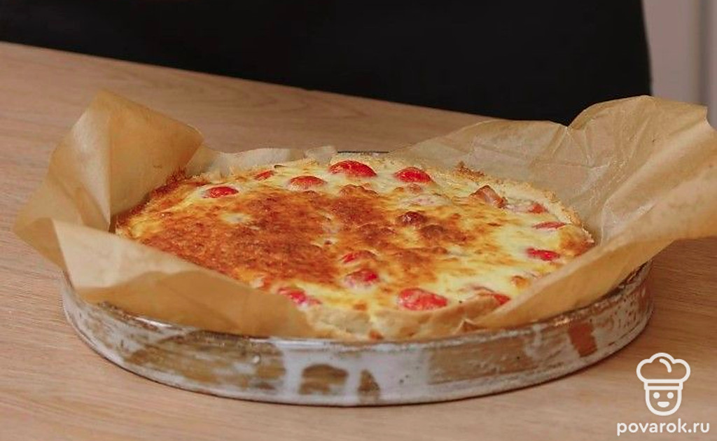 Классический французский пирог из рассыпчатого песочного теста и яичной заливки. В начинке сочетаются ароматный обжаренный бекон, репчатый лук и сладкие помидоры с яйцами и сметаной. Тесто можно приготовить заранее и заморозить.