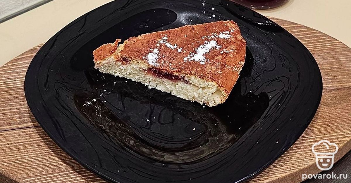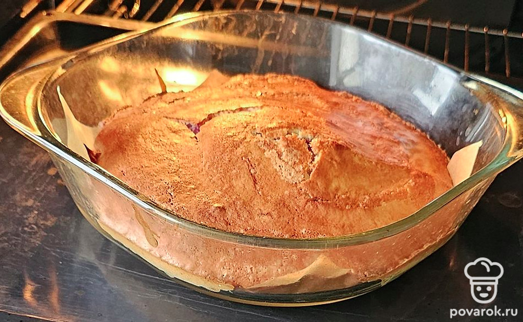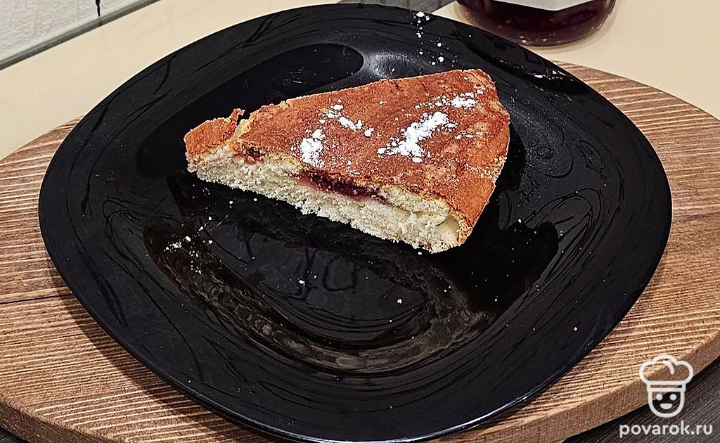 Готовый пирог остудите, посыпьте сахарной пудрой.