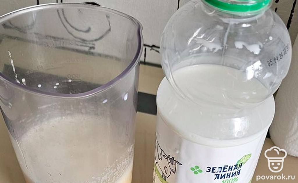 Яйца взбейте сахаром в пышную пену. Добавьте молоко, растительное масло, разрыхлитель, ванильный сахар, муку. Все перемешайте.