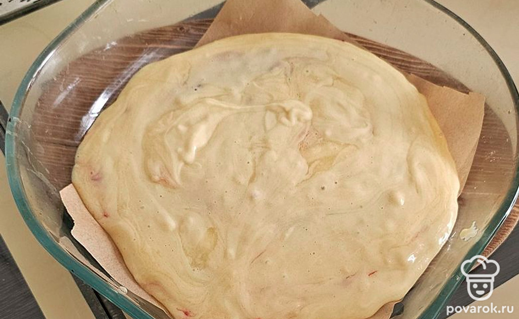 Сверху вылейте остатки теста. Выпекайте при 180 градусах 40 минут.