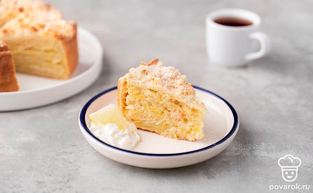 В классическом трехслойном пироге по-татарски лимонная начинка соседствует с курагой и черносливом. Но можно отойти от классики и приготовить похожий десерт, но только с одним фруктом. Терпкая начинка из лимона с сахаром и медом оттенит и дополнит сдобное песочно-дрожжевое тесто с деликатным сливочным вкусом.