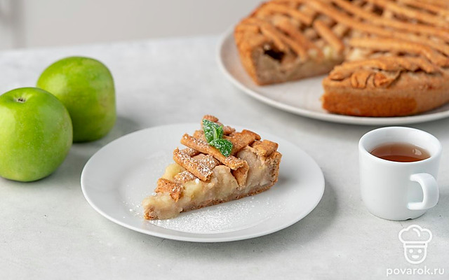 Постные пироги отличаются от обычных тем, что в них нет яиц и других компонентов животного происхождения. Тесто готовится на воде с добавлением опары. Поэтому оно получается таким же пышным, как и обычное. Начинку для пирога можно выбрать по своему вкусу. Мы взяли яблоки, так как они прекрасно подходят для поста. Чтобы выпечка была не слишком приторной, берите кисло-сладкие сорта.