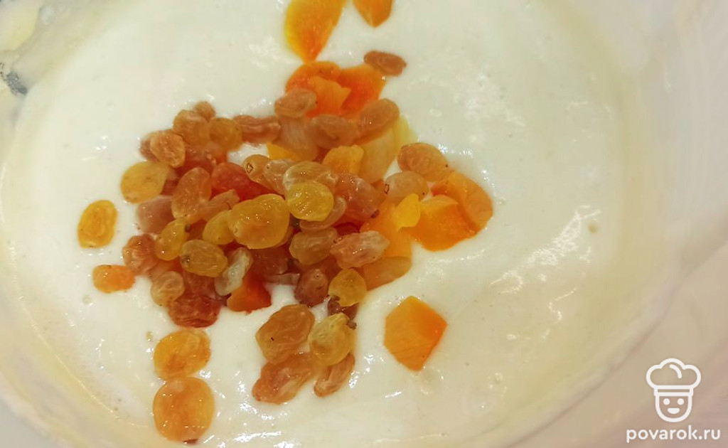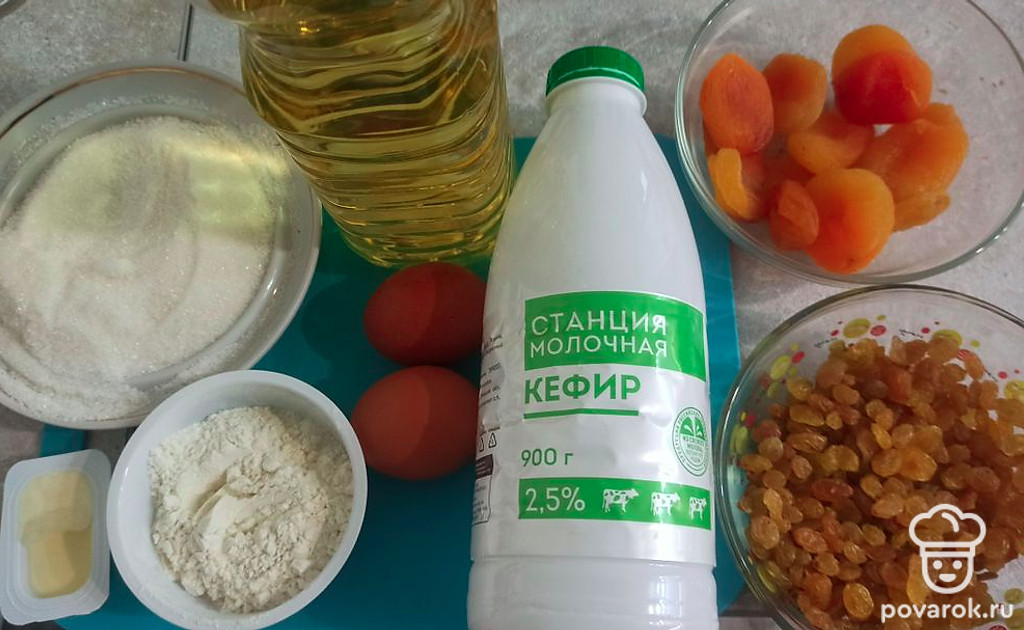 Пирог на кефире с изюмом и курагой