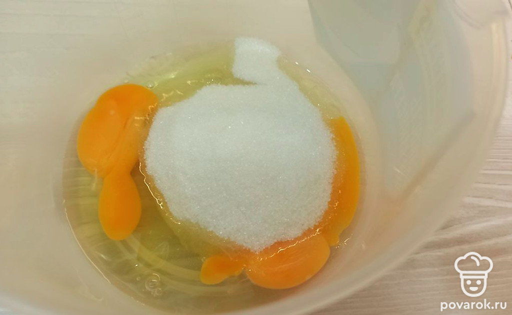 Яйца взбейте с сахаром.