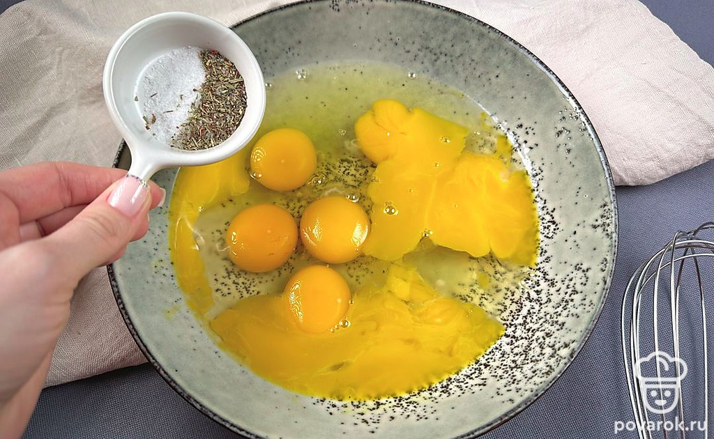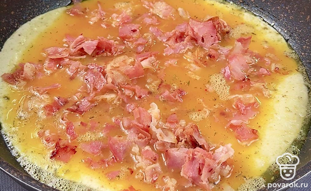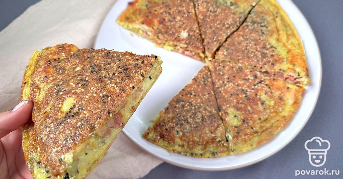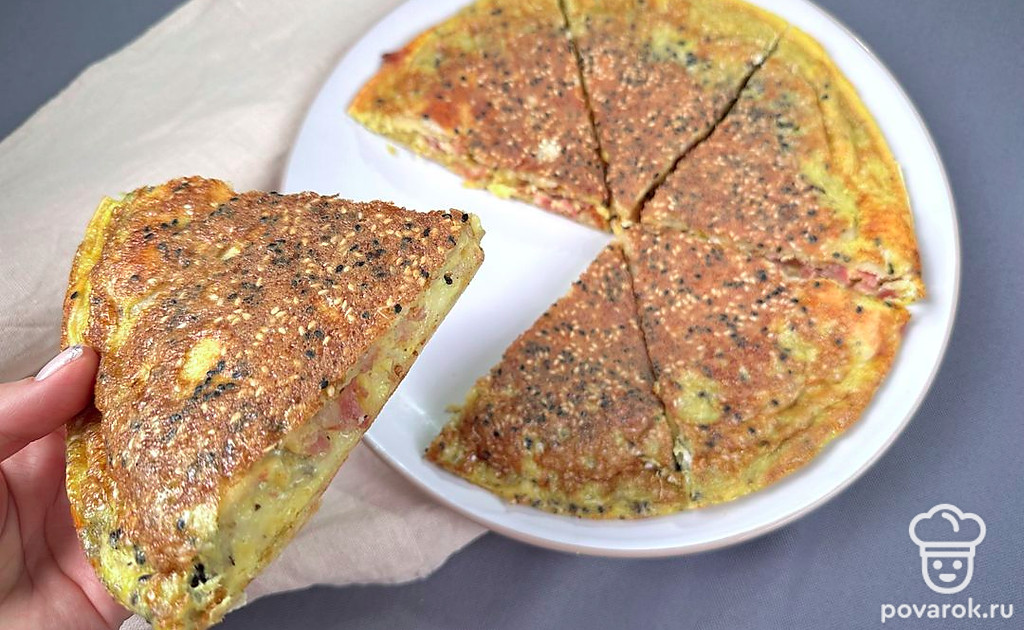 Интересный вариант вкусного завтрака на всю семью за считаные минуты. Для приготовления этого пирога не нужно возиться с тестом, количество яиц можно варьировать, увеличивая или уменьшая количество приготовленных за раз порций. И, самое главное, такой формат блюда удобно брать с собой в качестве перекуса.