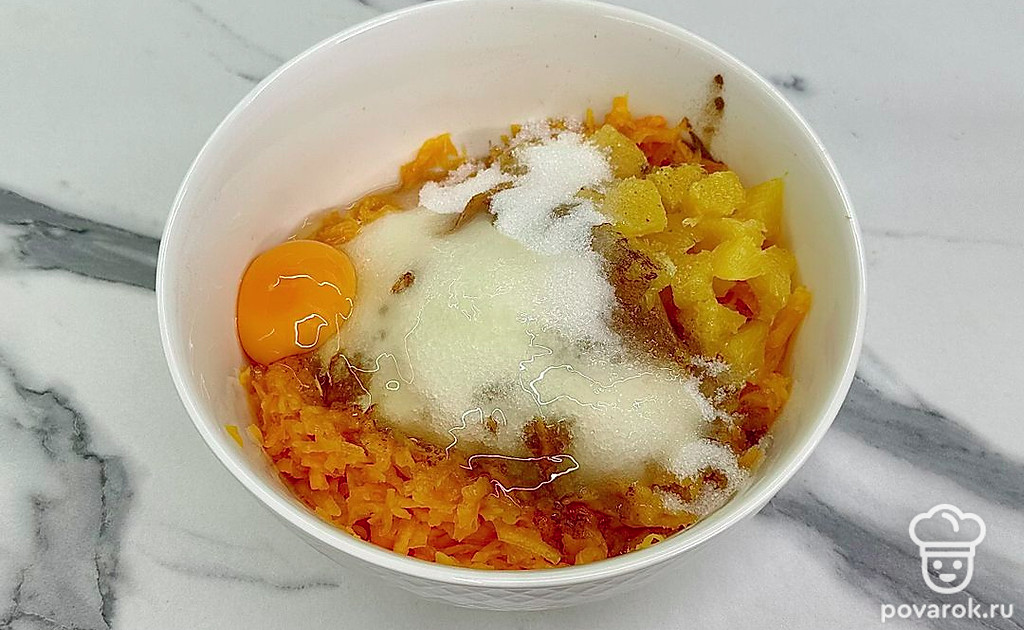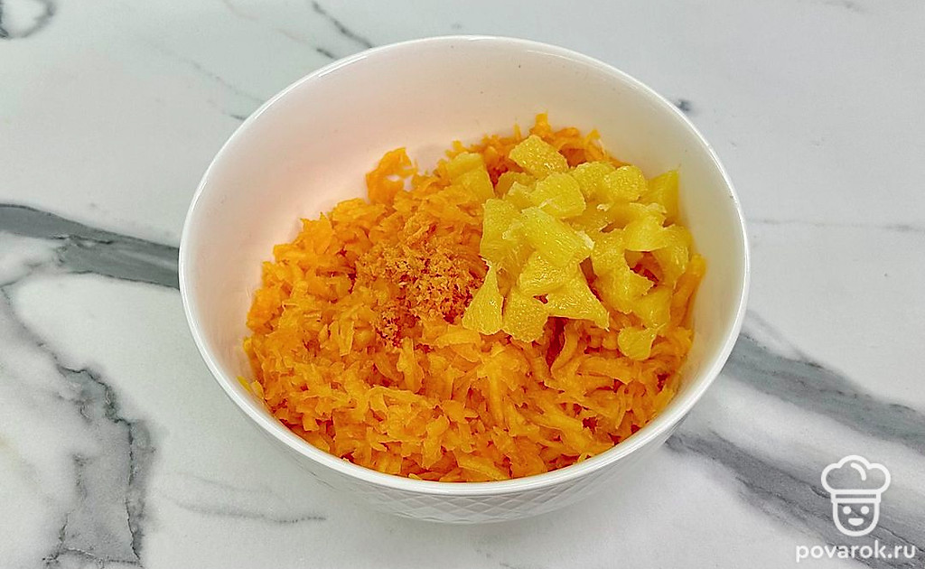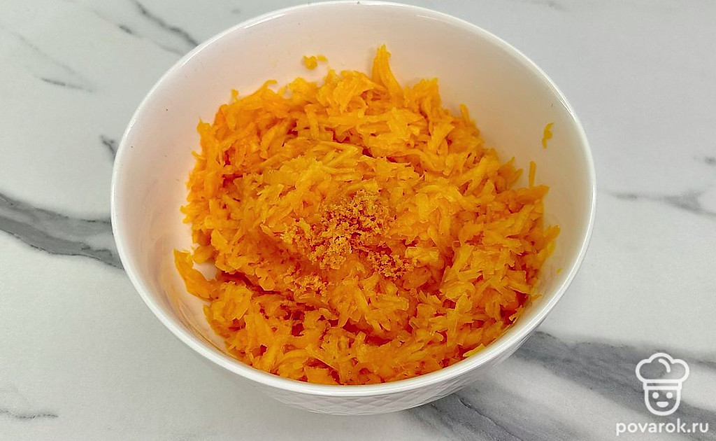 Цедру апельсина натереть на мелкой терке и добавить к тыкве.