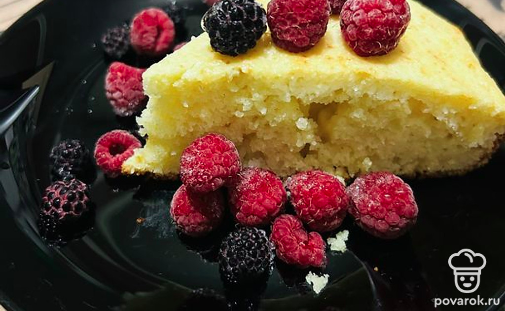 Манник разрезаем на порции и подаем со свежими ягодами. Приятного аппетита!
