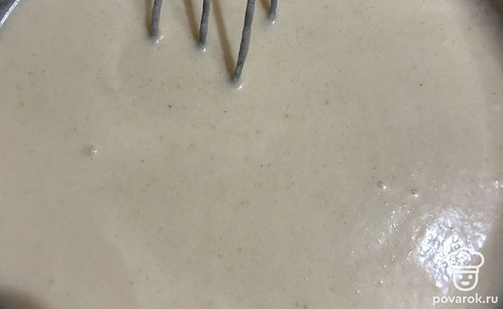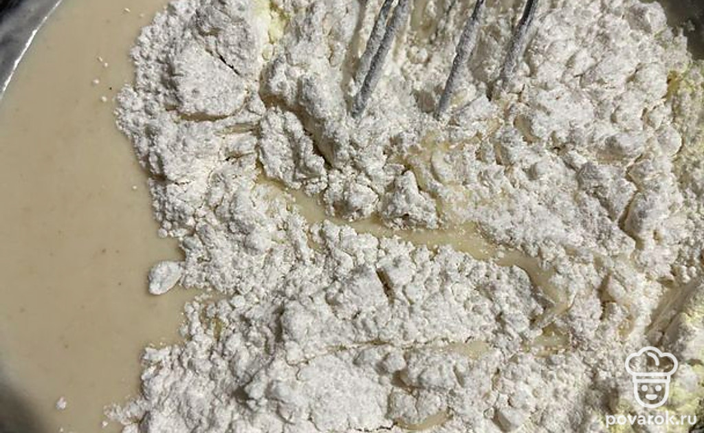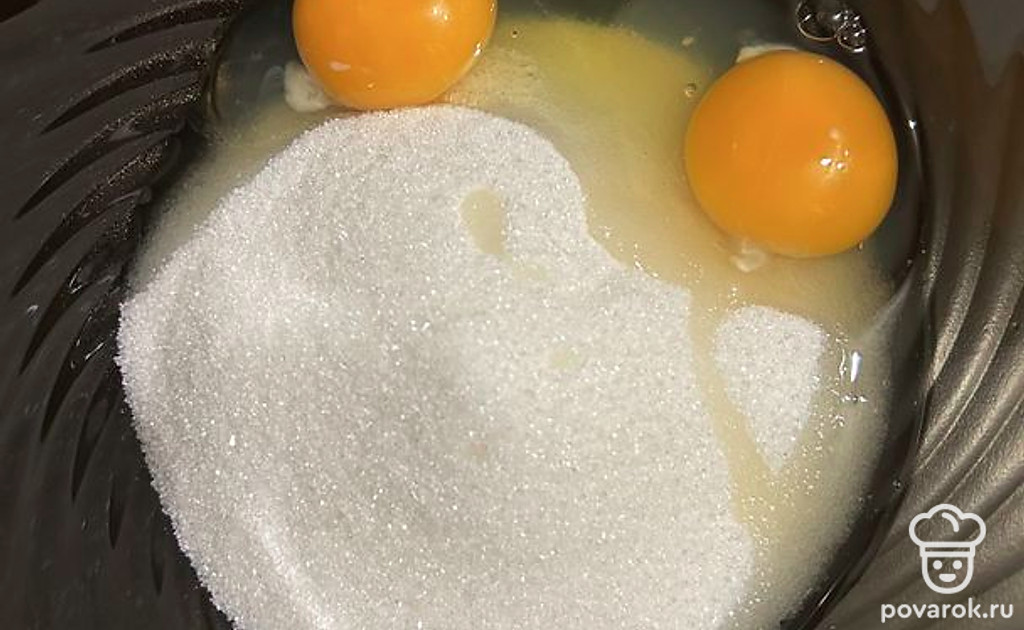Манную крупу смешиваем со сметаной и оставляем набухать 15 минут. Яйца смешиваем с сахаром.