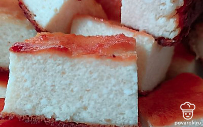 Вылить в форму и отправить в духовку на 45 минут при 180 градусах.