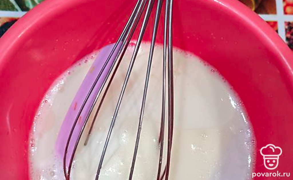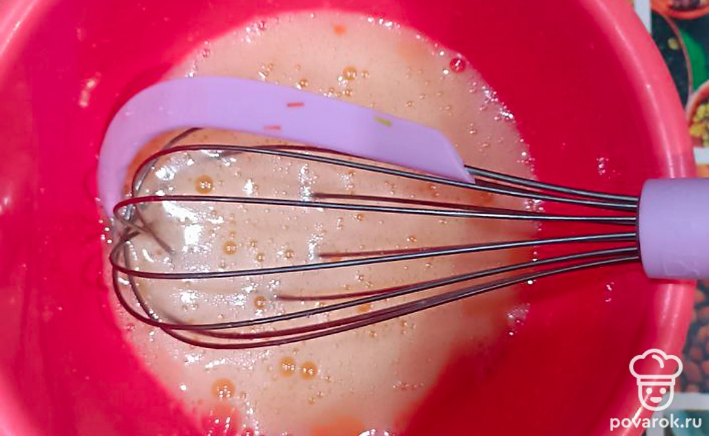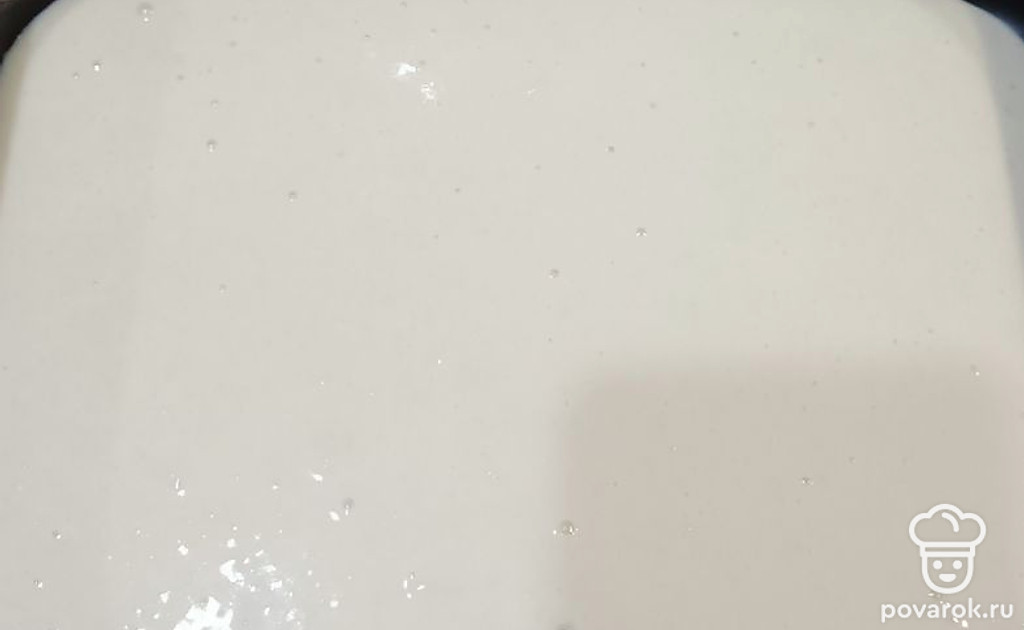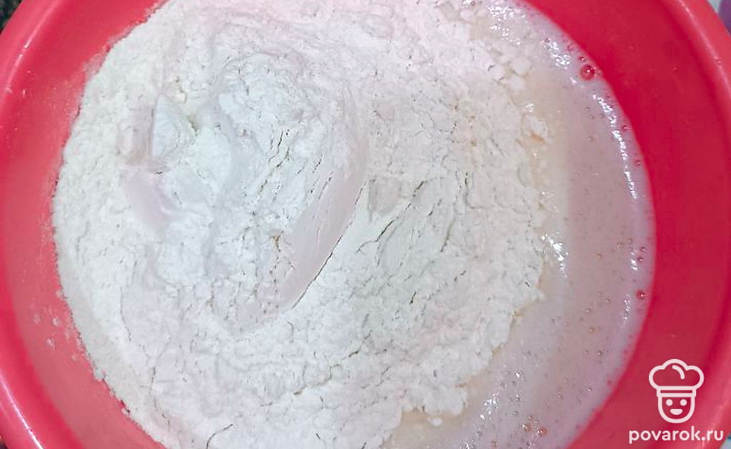 Добавить муку и хорошо размешать. Должна получиться консистенция сметаны.