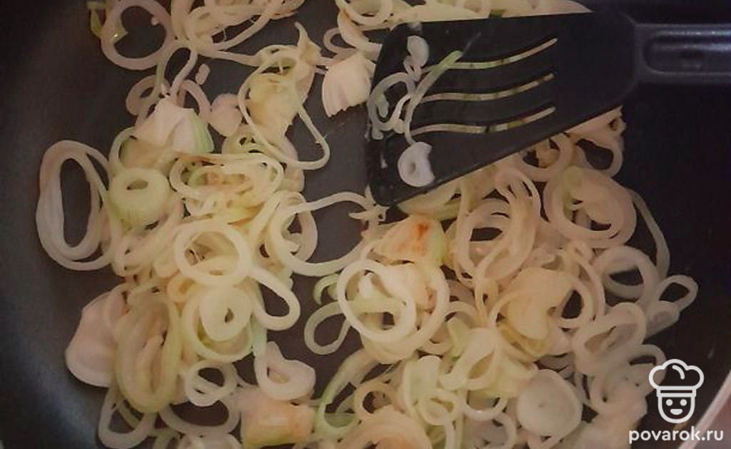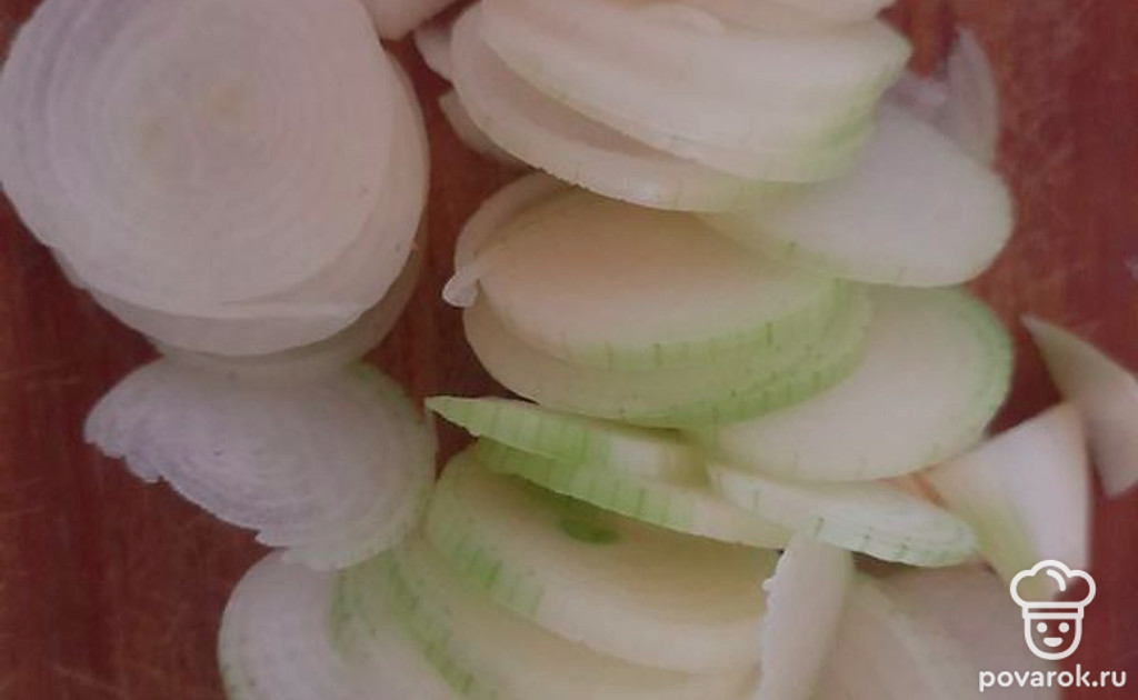 Берем 2 крупные луковицы лука-шалот, нарезаем полукольцами.