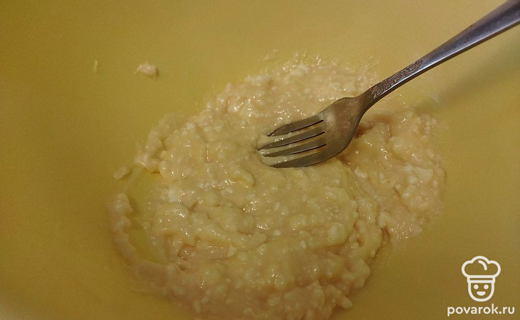 Смешайте творог, йогурт сахар, яйца и муку до однородности.