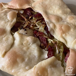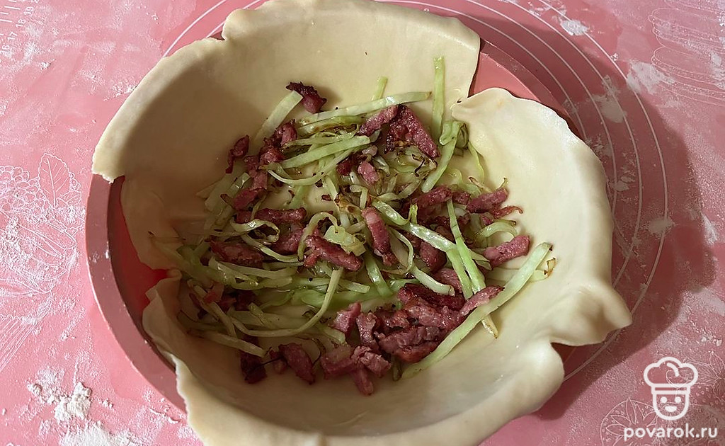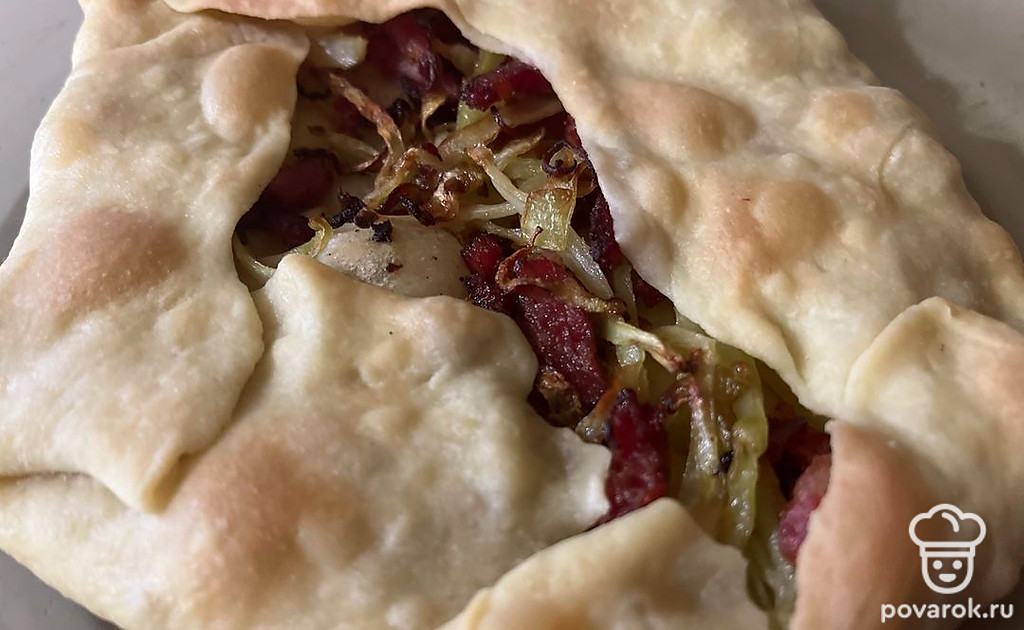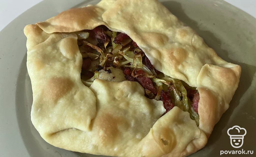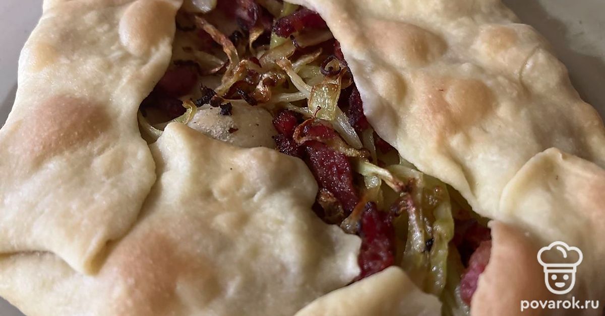 Румяная галета на песочном тесте с капустой и копчёной колбасой