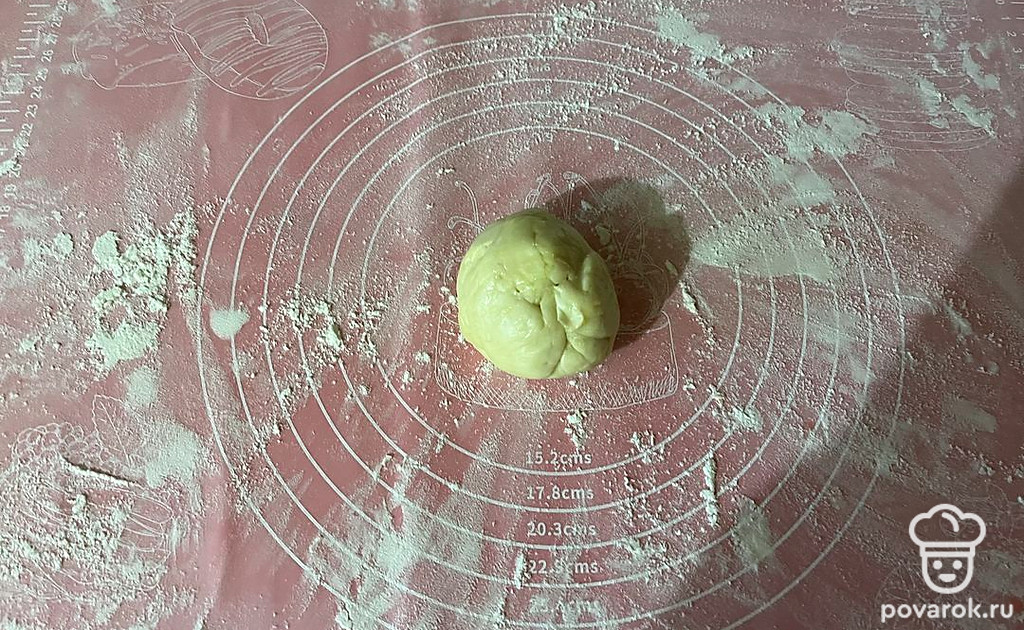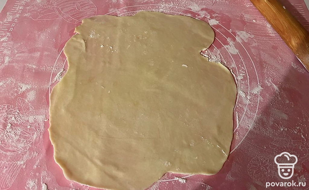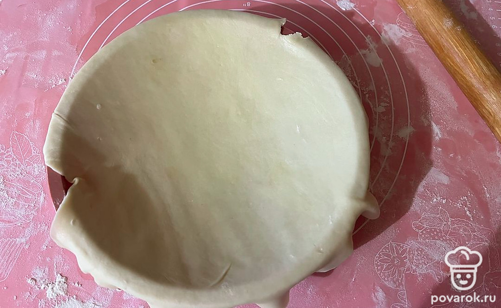 Для удобства прижмите тесто руками в более менее ровный круг.