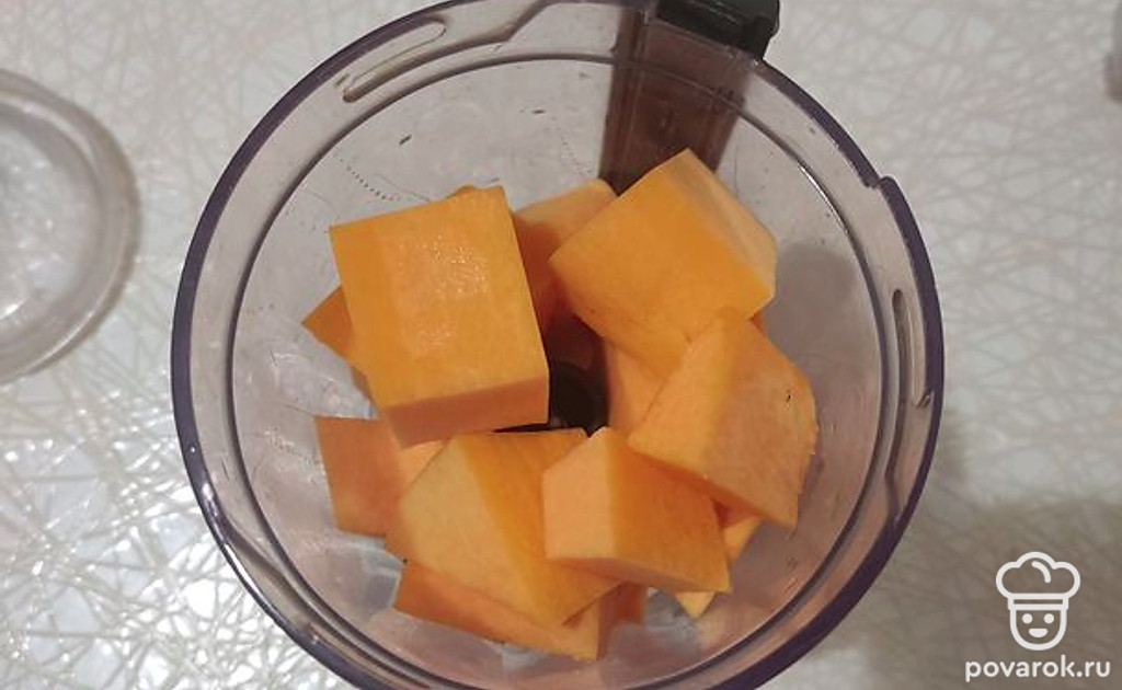 Тыкву помоем, почистим и нарежем небольшими кусочками.