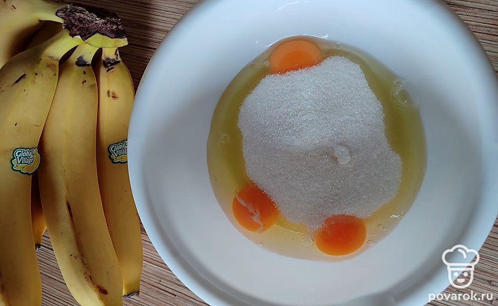 Сковороду смажьте растительным маслом, выложите нарезанные бананы.