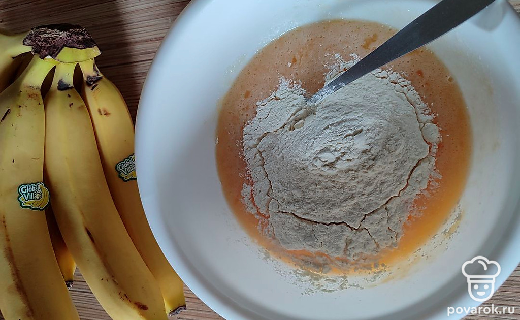 Просейте стакан муки, вновь перемешайте до однородной консистенции.