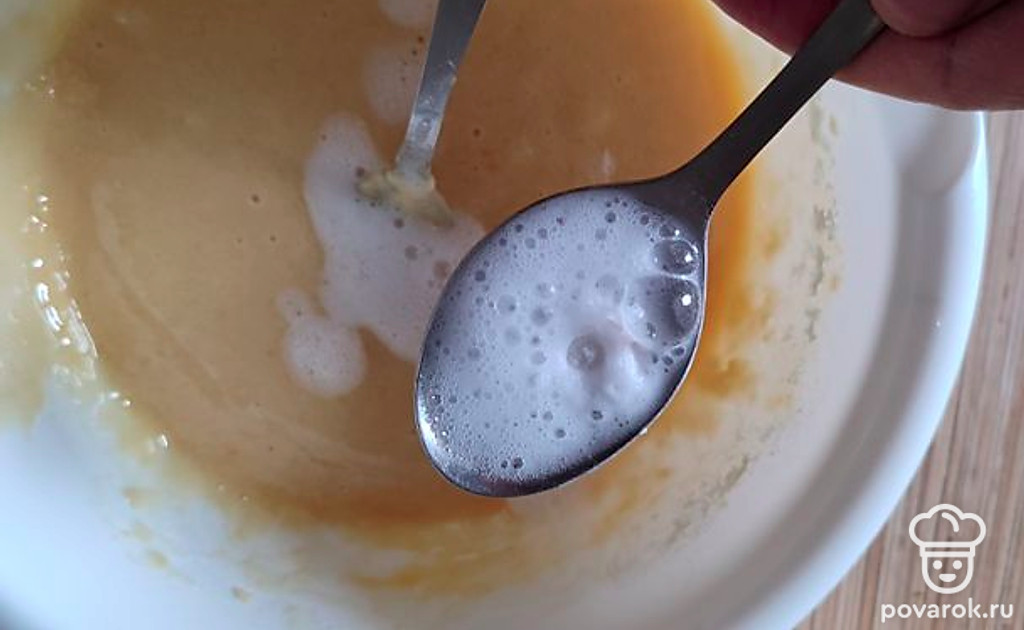 Соду погасите уксусом, добавьте в тесто, перемешайте.