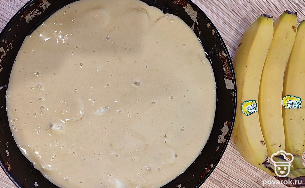 Вылейте тесто на бананы и аккуратно разровняйте.