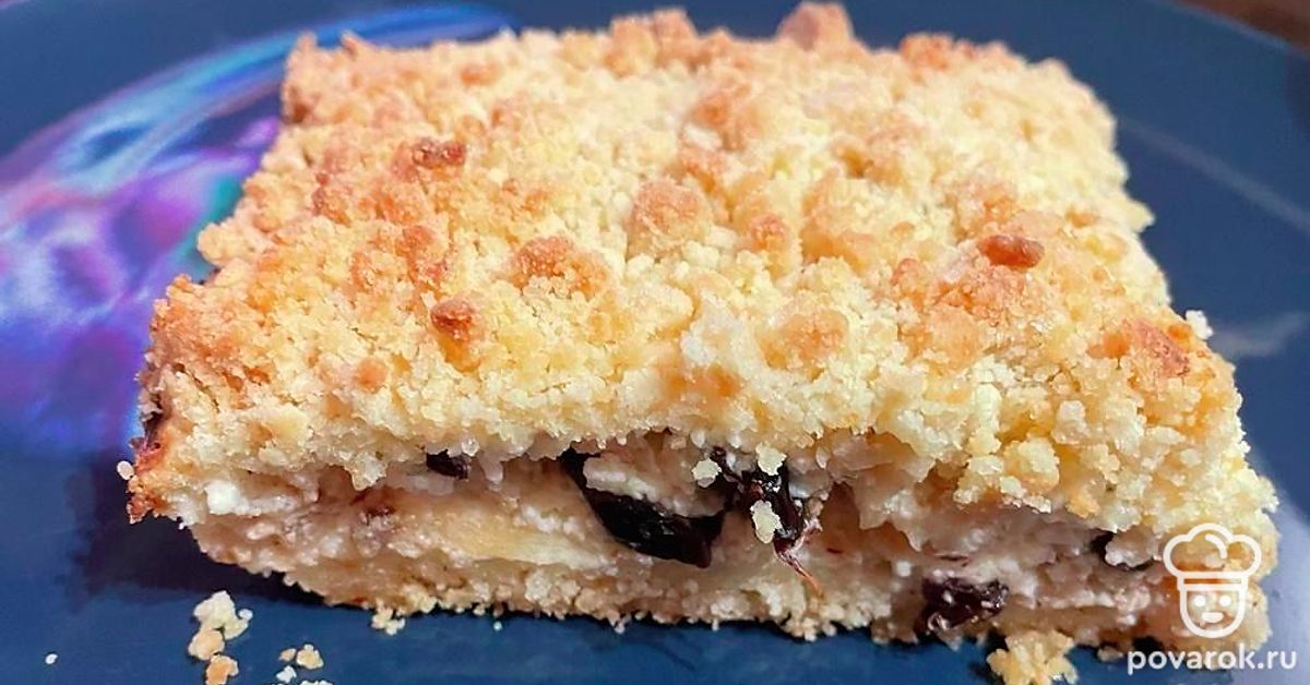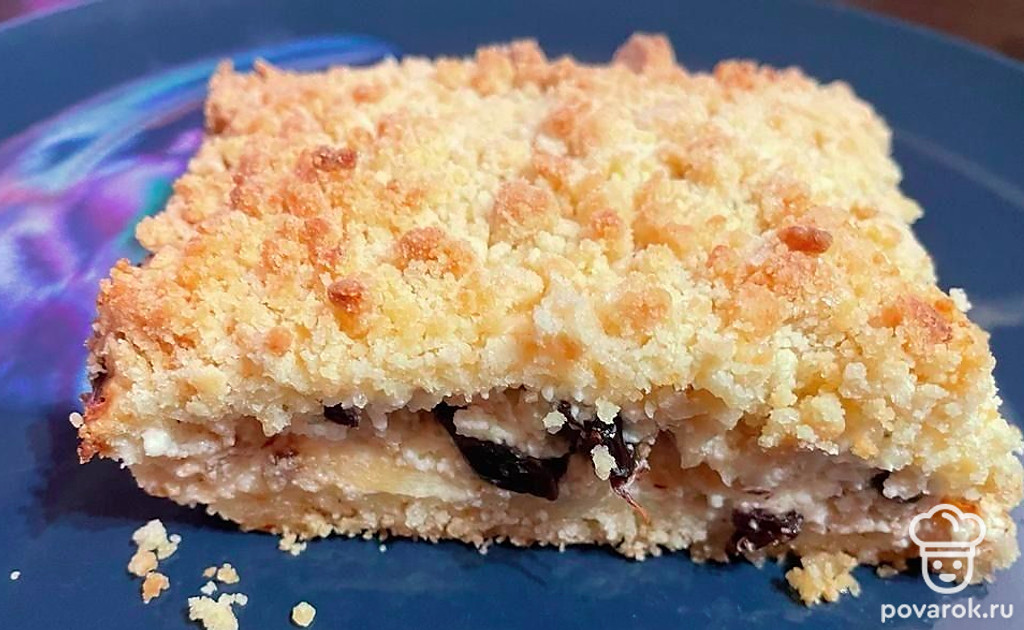 Пирог с творогом, черносливом и яблоками получается очень сытным!