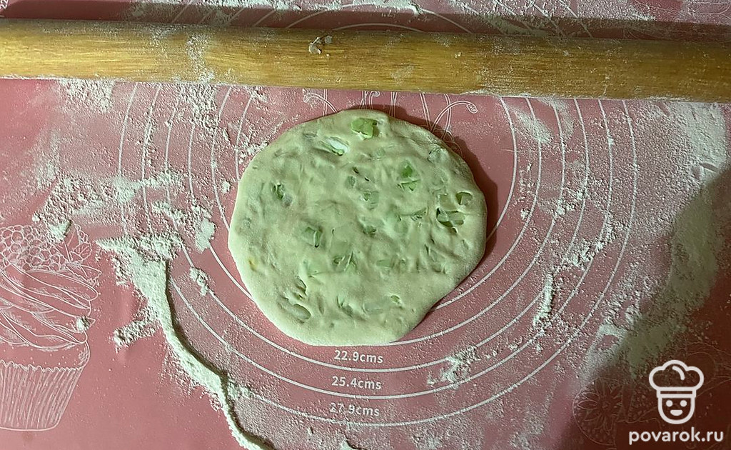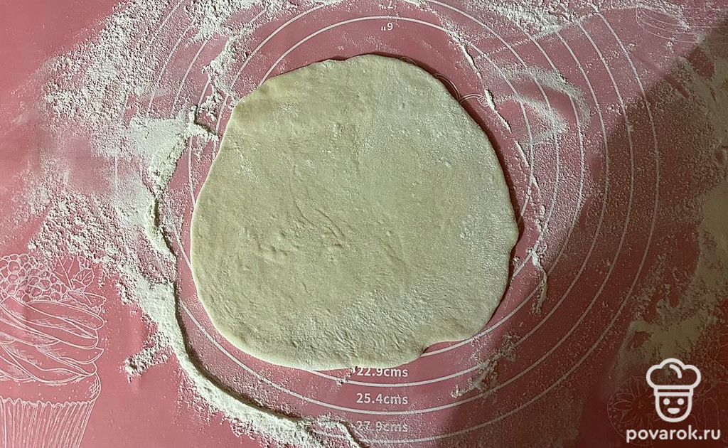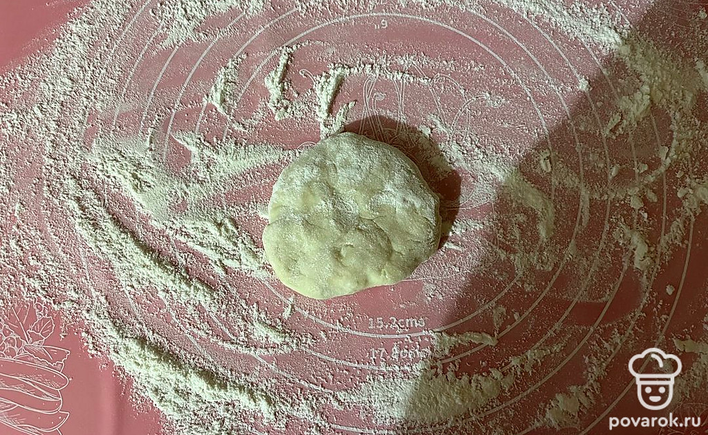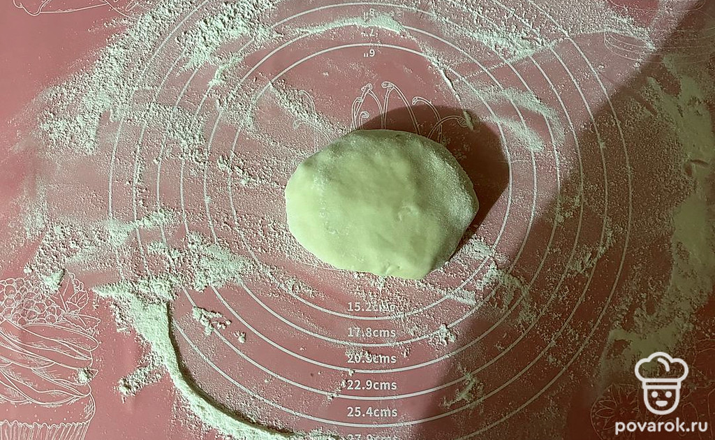Тесто раскатайте в пласт толщиной 0,4-0,5 сантиметров.