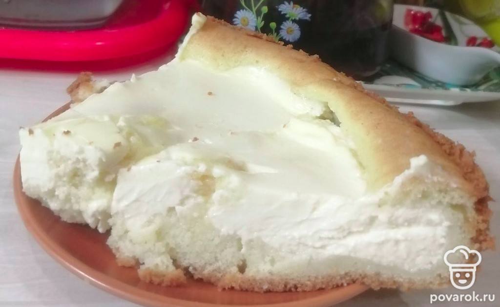 Достаем пирог из духовки. Даем остыть и убираем в холодильник для стабилизации на 4-5 часов. Нарезаем на порционные кусочки и подаем к столу.
