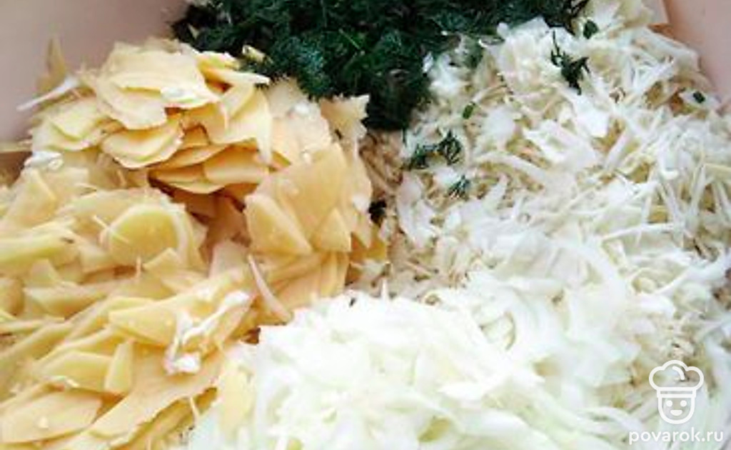Сочный пирог с картошкой, капустой и луком