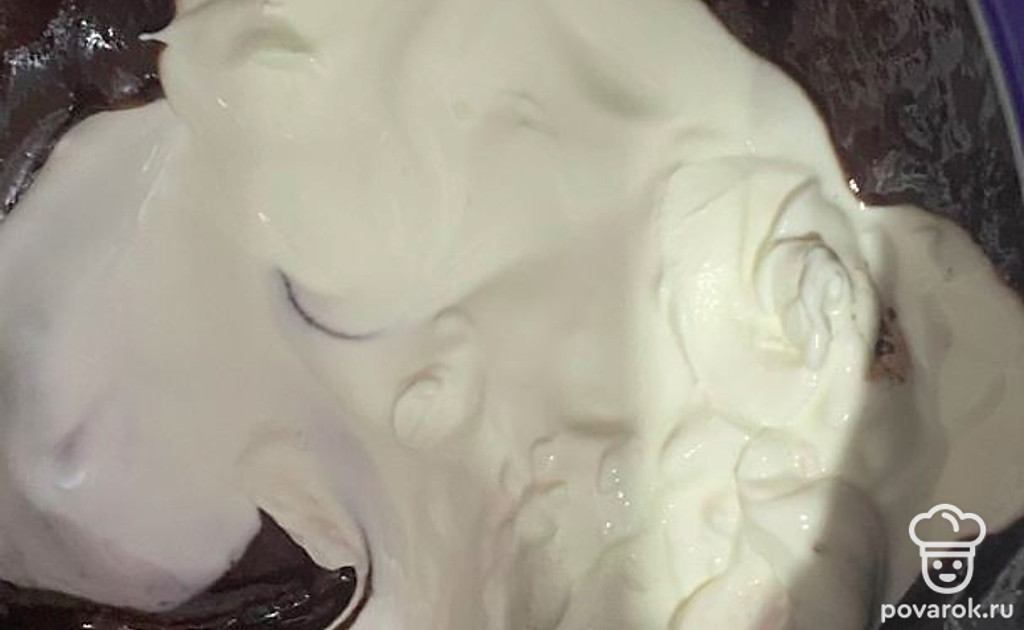 Соедините растопленный шоколад с мукой, сахаром, разрыхлителем и какао.