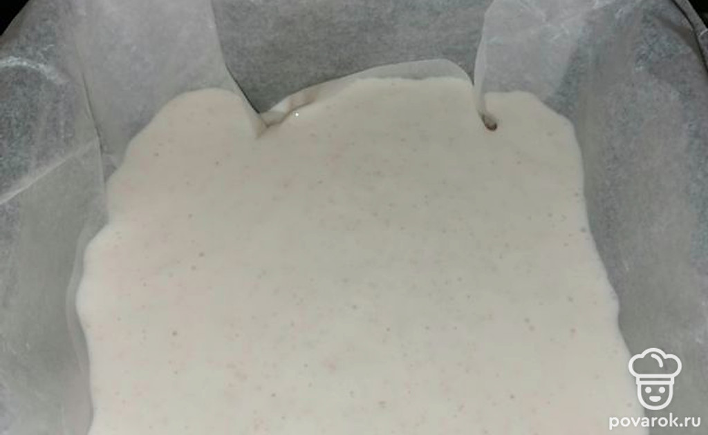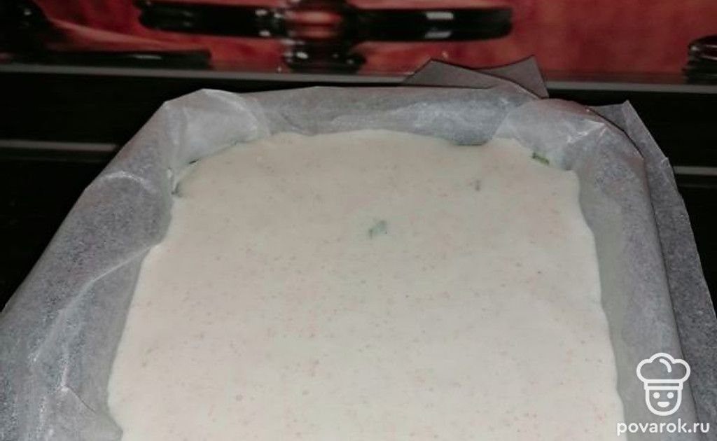 Далее добавить яйцо, разрыхлитель, муку и специи. Замешать тесто. Вылить в форму, одну часть.