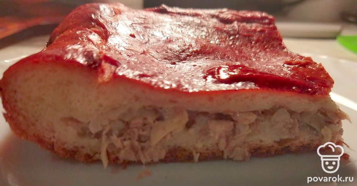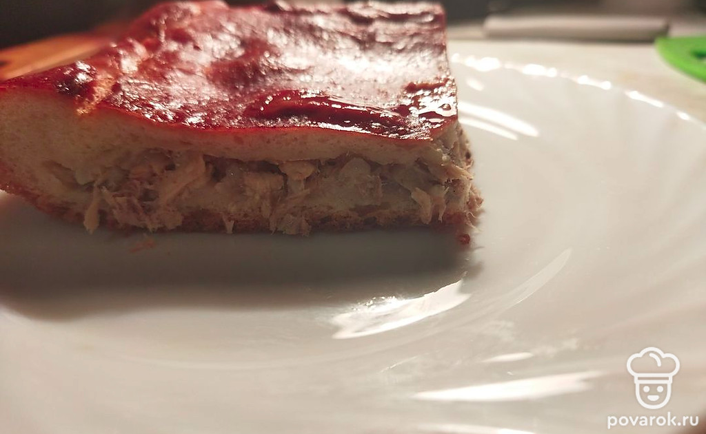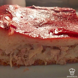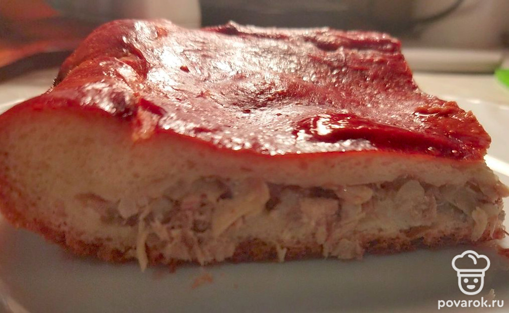 Пышный пирог с хрустящей корочкой и сочной начинкой.