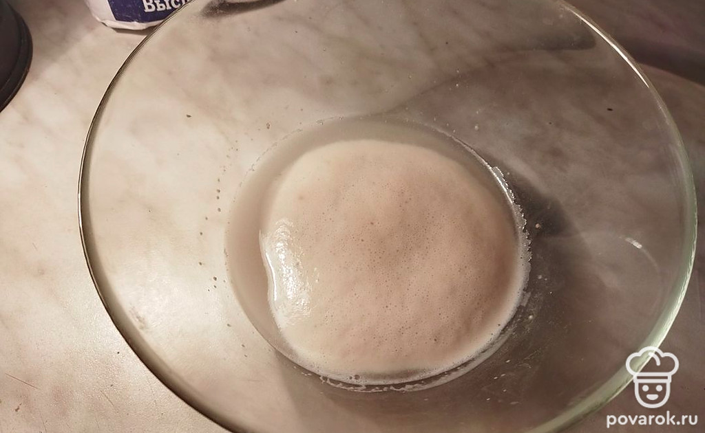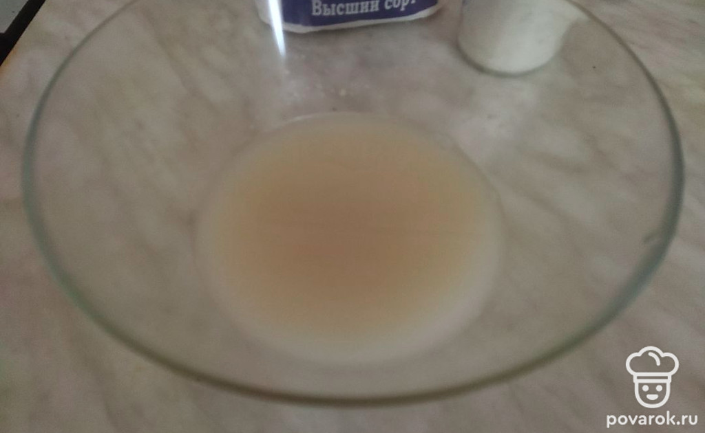 Сначала приготовим тесто. В стакане тёплой воды (40 градусов) смешиваем дрожжи и сахар, оставляем на 15 минут.