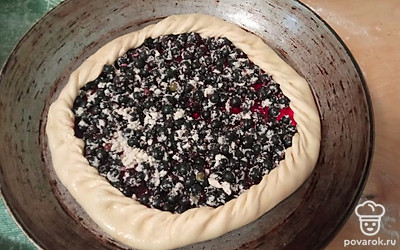Раскладываем смородину, немного присыпаем сахаром и мукой.