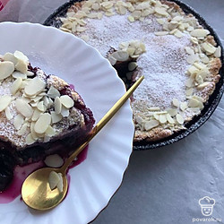 Выпекаем 20 мин. пирог по краям выдаст сок и цвет ягод. Это нормально. Если взять меньше форму или больше пропорции в рецепте, то можно сделать более красиво. Но нам хватит и просто украсить.