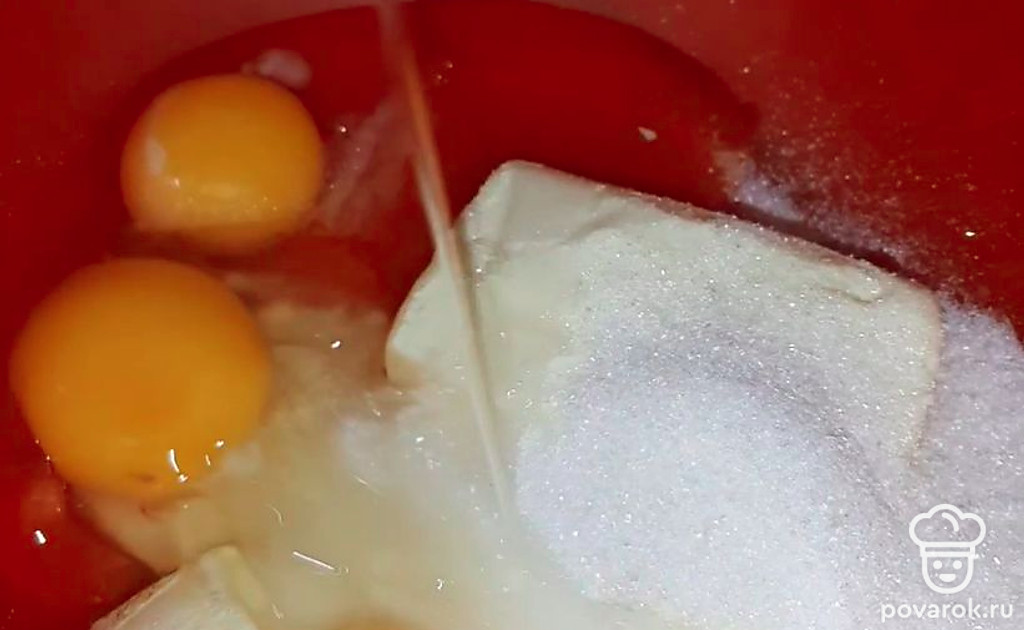 Мягкое сливочное масло смешиваем с сахаром и щепоткой соли.