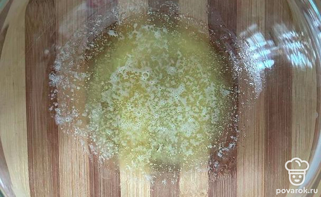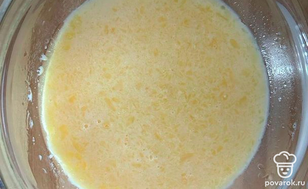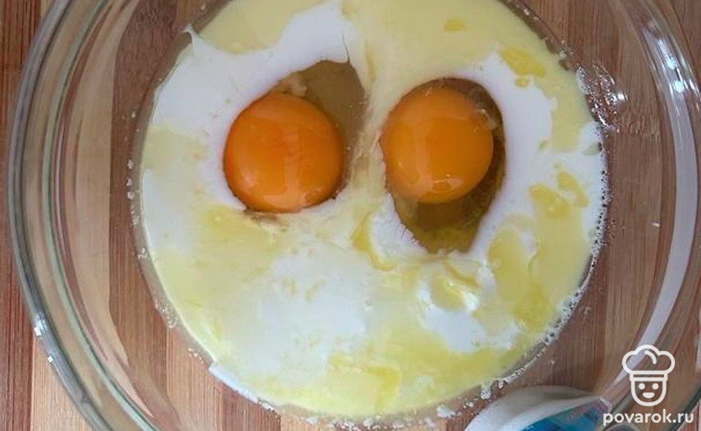 Смешиваем яйца, сметану, растопленное масло и солим по вкусу.