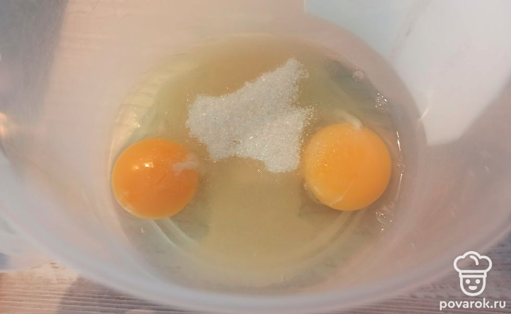 Яйца взбиваем с сахаром.