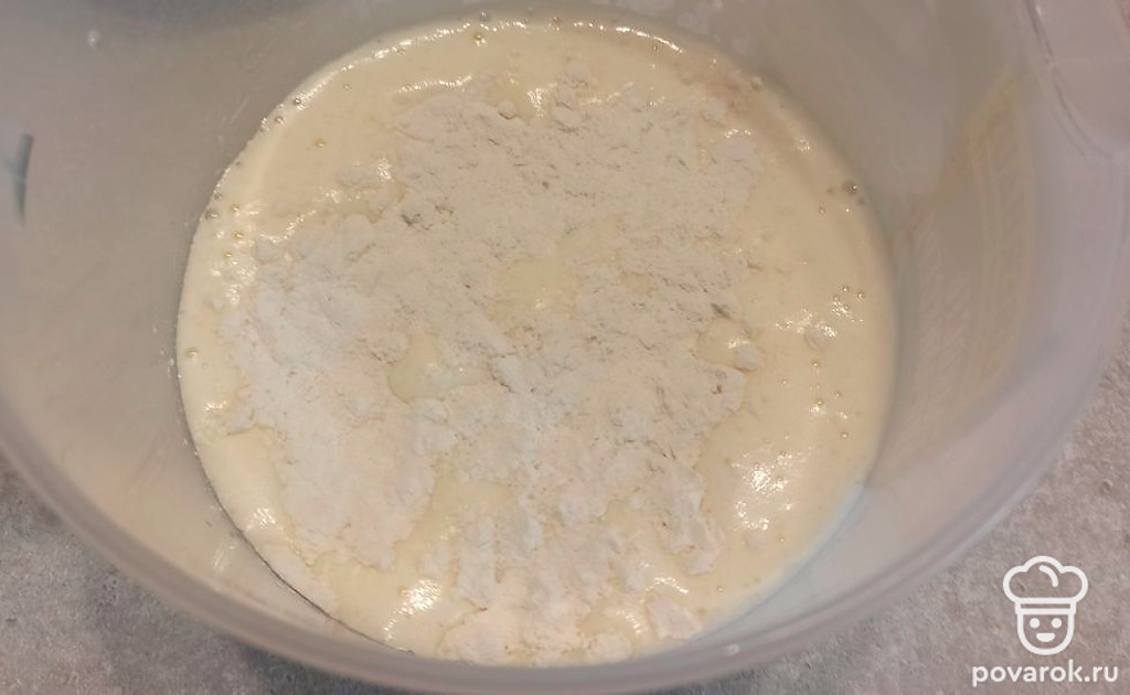 Просеиваем муку и разрыхлитель теста.