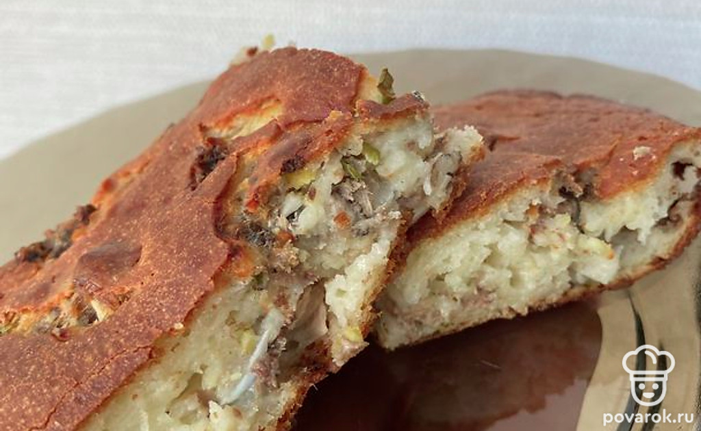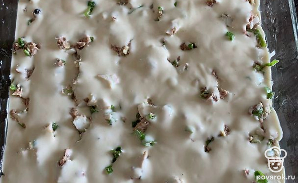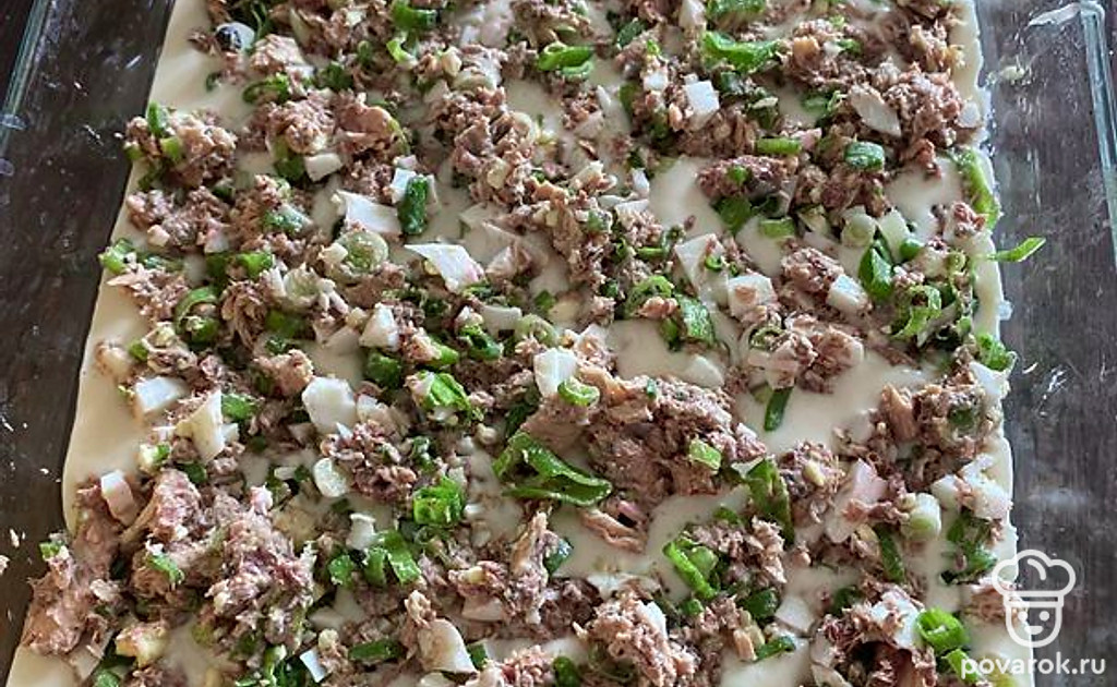 Заливной пирог с рыбой, яйцом и зеленым луком