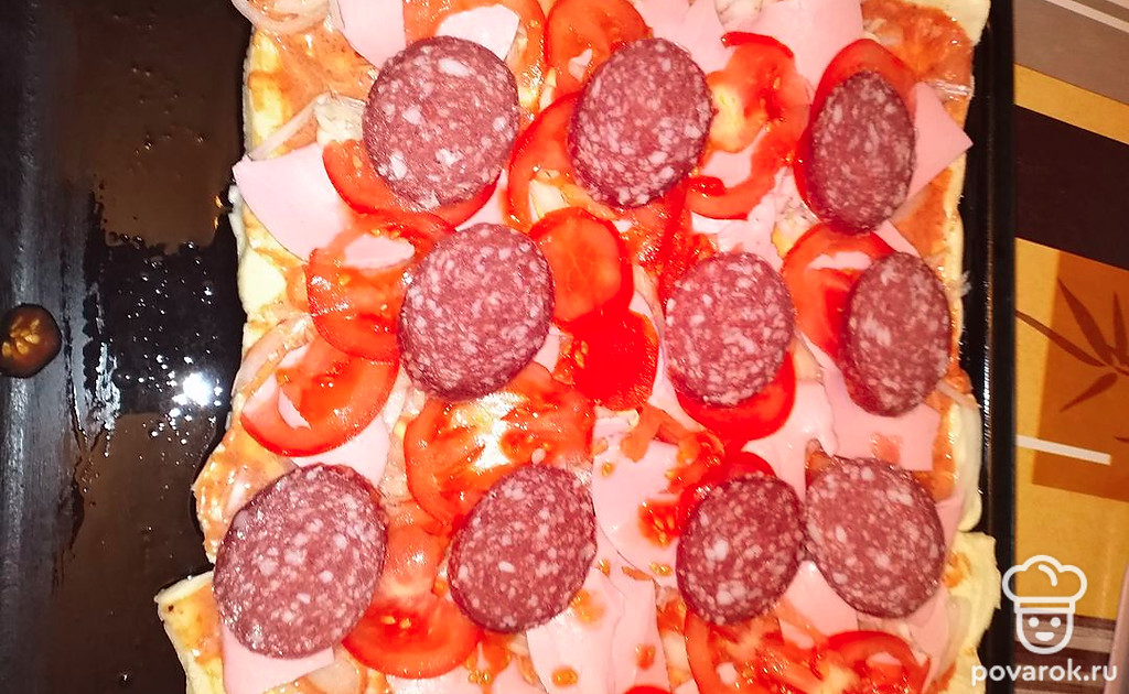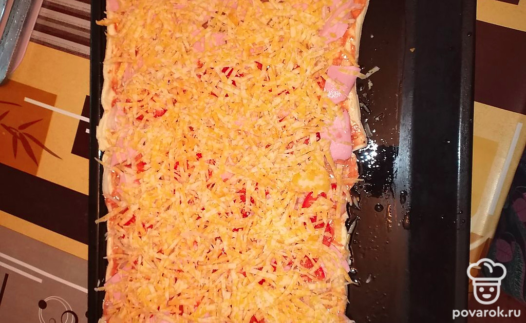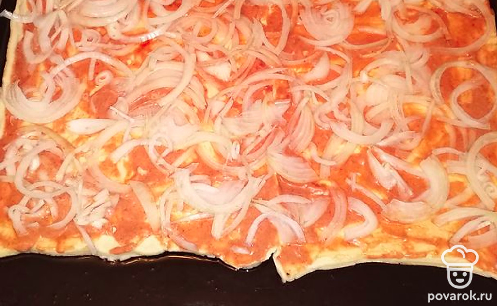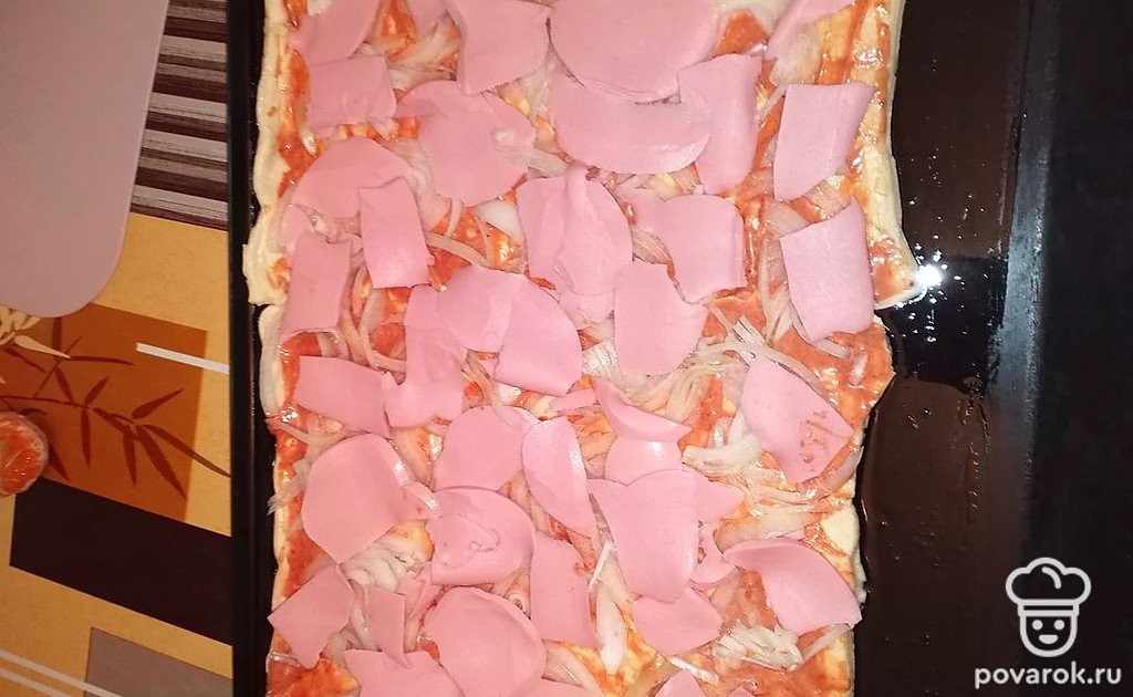 Предлагаю быстрый вариант домашнего лукового пирога с колбасой и сыром на основе слоёного теста-полуфабриката. Хрупкие лепешки, расплавленный сырный слой, подушка из лука и колбасы. Готовится 30 минут.